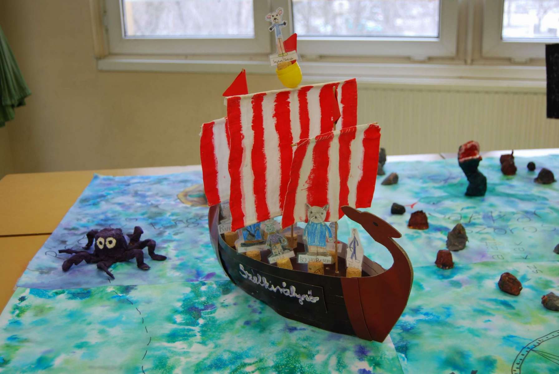 Elkészítettük a Szélkirálynő és az Aranyvadász makettjeit is, igyekeztünk a regényben szereplő képeket és leírásokat is felhasználni. A makett teljes egészében papírból készült. A vázat kemény kartonból vágták ki a gyerekek, majd erre ragasztottuk a vékony kartoncsíkokat, amiből végül kialakult a hajótest.